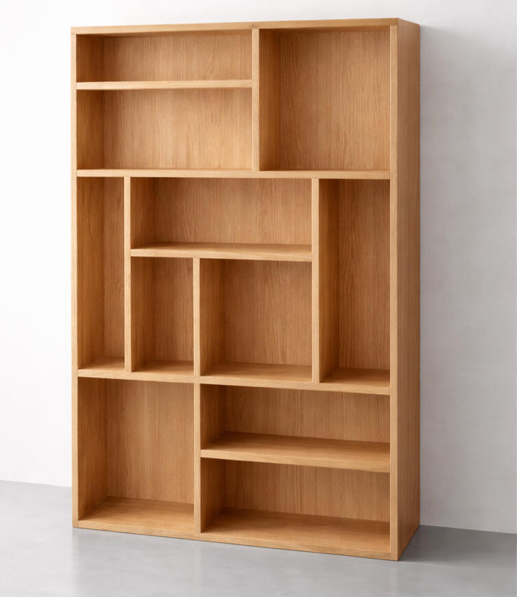 An open shelving unit designed for wall mounting and everyday use. The Studio Shelf uses a varied grid of compartments to accommodate objects without prescribing how it should be used. A structural back panel prepares the piece for mounting with a French cleat, keeping it secure while maintaining a clean, floating presence on the wall.Specifications: